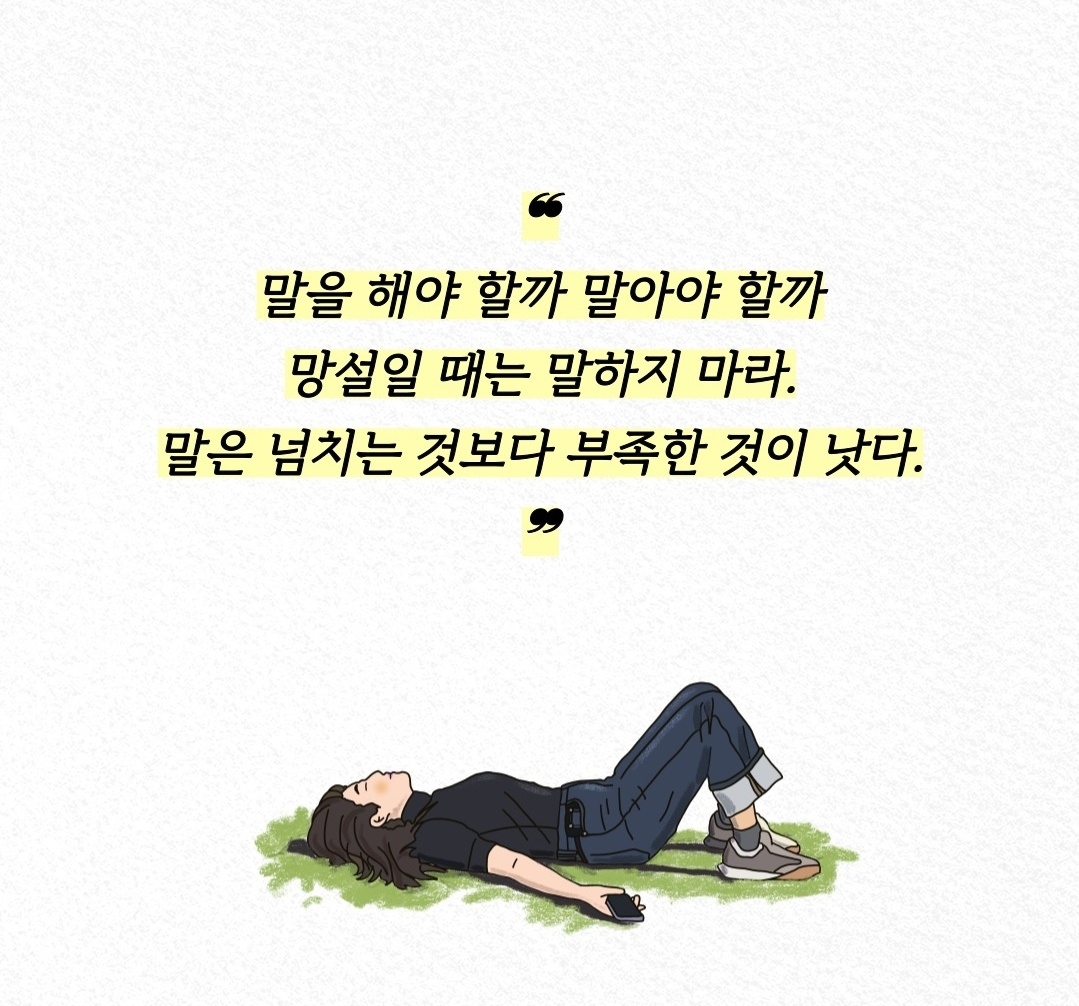 말은 도구이자 무기입니다. 하지만 우리가 생각 없이 내뱉는 말은 상처를 주기도 하고, 되돌릴 수 없는 결과를 초래하기도 합니다. 망설여질 때는 침묵이 가장 현명한 선택일 수 있습니다. 말은 그 양보다는 질이 중요합니다. 적게 말해도 그 말에 진심과 깊이가 담겨 있다면, 그 말은 결코 가벼운 것이 아닙니다.