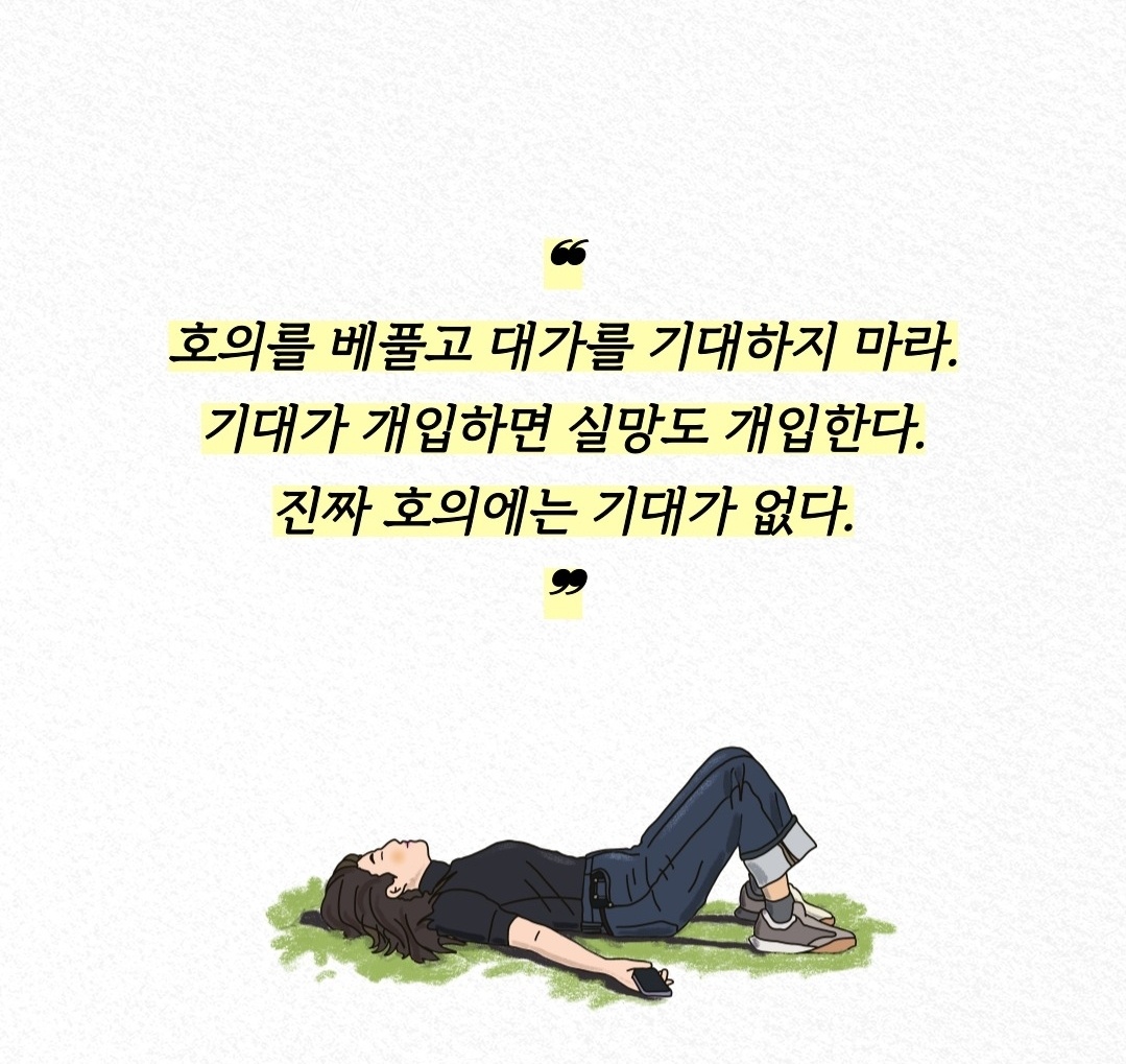 “호의를 베풀되, 아무런 기대도 하지 마세요. 기대가 생기면 실망도 함께 옵니다. 진정한 호의에는 기대가 없습니다.”