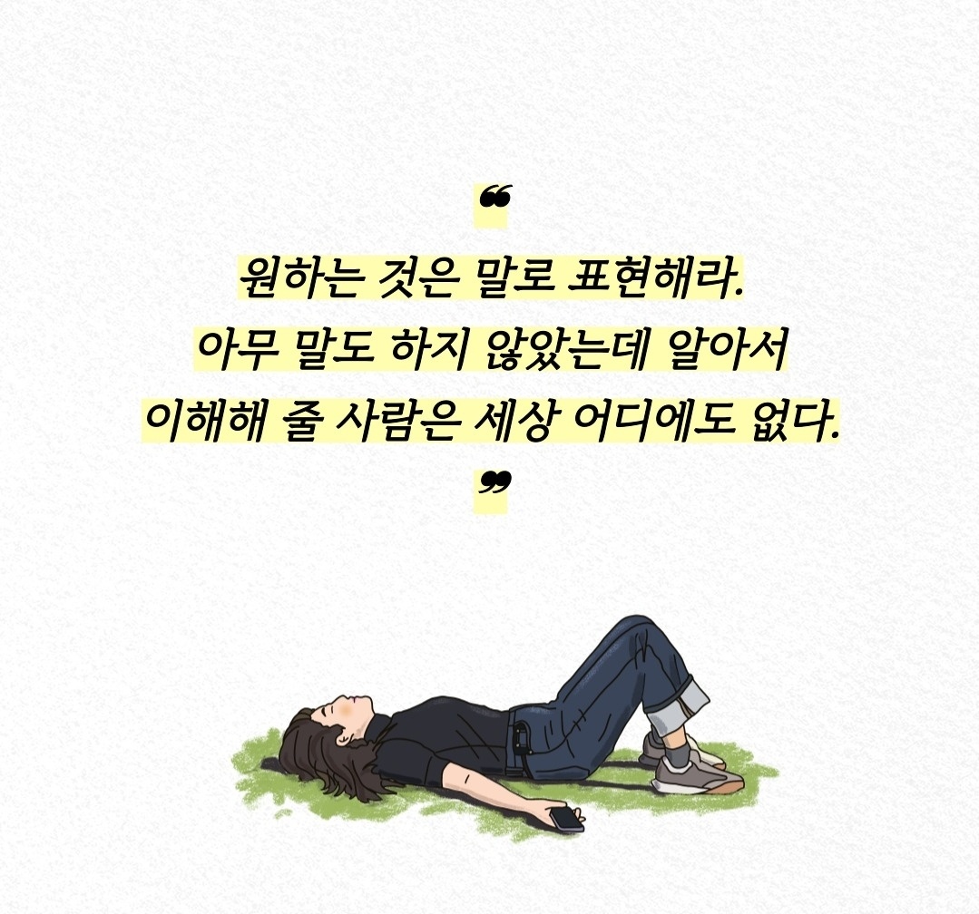 우리는 때로, 우리의 마음을 상대방이 알아주길 기대합니다. 그러나 세상은 우리의 마음을 읽지 못합니다. 원하는 것이 있다면, 그것을 분명하게 표현해야 합니다. 말하지 않고 기대하는 것은 오해를 낳고, 관계를 복잡하게 만듭니다. 원하는 것을 솔직하게 말하는 것은 상대방과의 소통을 원활하게 하고, 불필요한 갈등을 피하는 길입니다.
