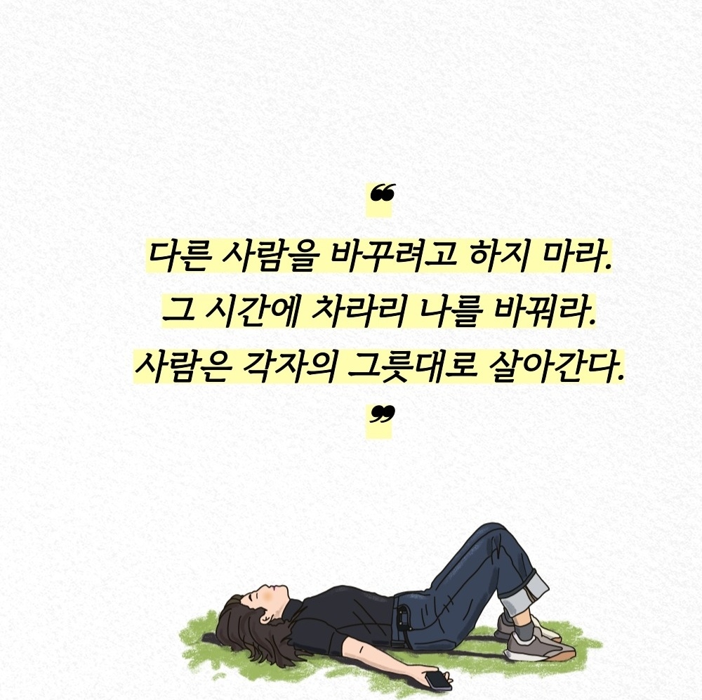 “다른 사람을 바꾸려 하지 마세요. 그 시간에 스스로를 바꾸세요. 사람은 저마다의 방식대로 살아갑니다.”
