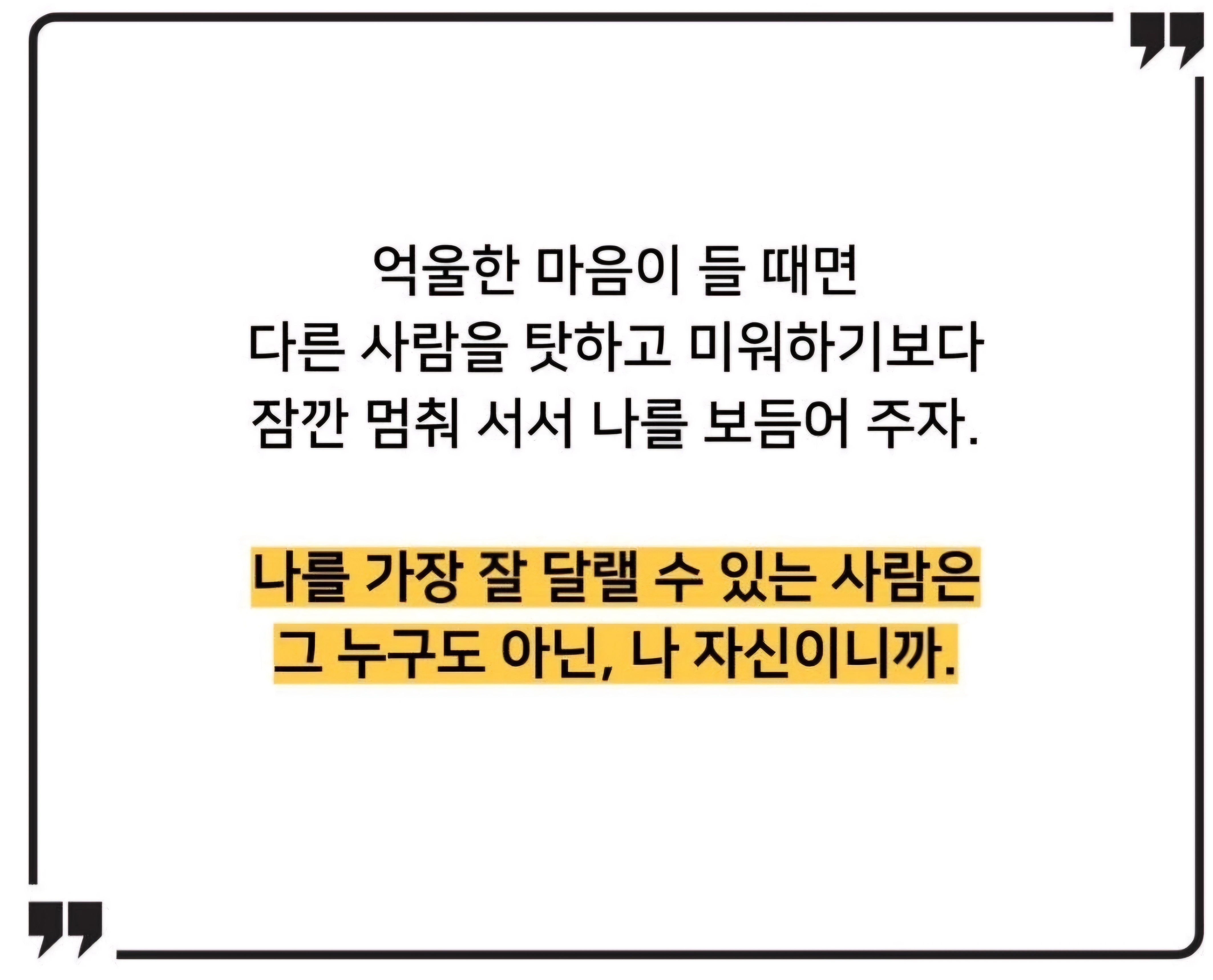억울하다는 생각이 들 때마다 남을 비난하거나 미워하기보다는 잠시 멈춰서 자신을 위로해 보세요. 자신의 고통을 가장 잘 달래줄 수 있는 사람은 바로 당신입니다. 이러한 접근 방식을 받아들임으로써 평화를 보호하고 인생에서 진정으로 중요한 것에 집중할 수 있습니다.